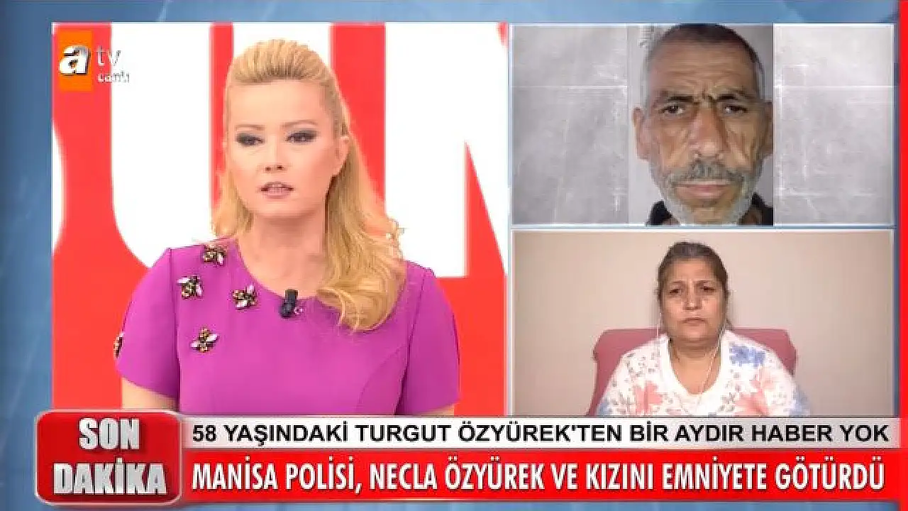 ATV'nin en çok izlenen sabah kuşağı programı olan Müge Anlı'da Manisa'da 1 aydır kayıp olan Turgut Özyürek dosyası araştırılıyor. Ağabeyinin ortaya çıkmasını isteyen Hayriye Özyürek ise programa katılıp onun bulunmasını istedi. Özyürek'in kaybıyla ilgili görüşü alınan eşi Necla Özyürek ile ilgili ise art arda çarpıcı iddialar ortaya atıldı. Necla Özyürek'in 7 kez evlendiği gerçeğinin ortaya çıkmasının ardından bu kez de torunlarına işkence ettiği görüntüler ortalığı karıştırdı.