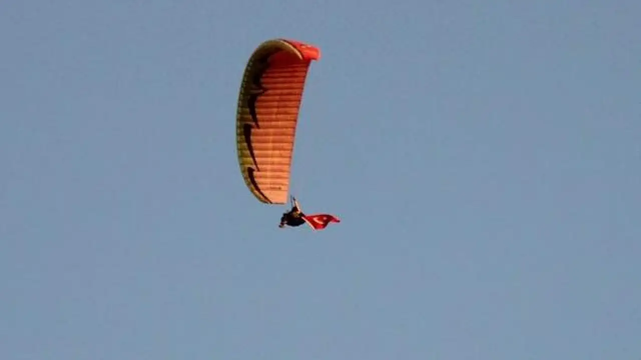 15 YAŞINDAKİ YAMAÇ PARAŞÜT PİLOTU GÖKYÜZÜNDE BAYRAK AÇTI