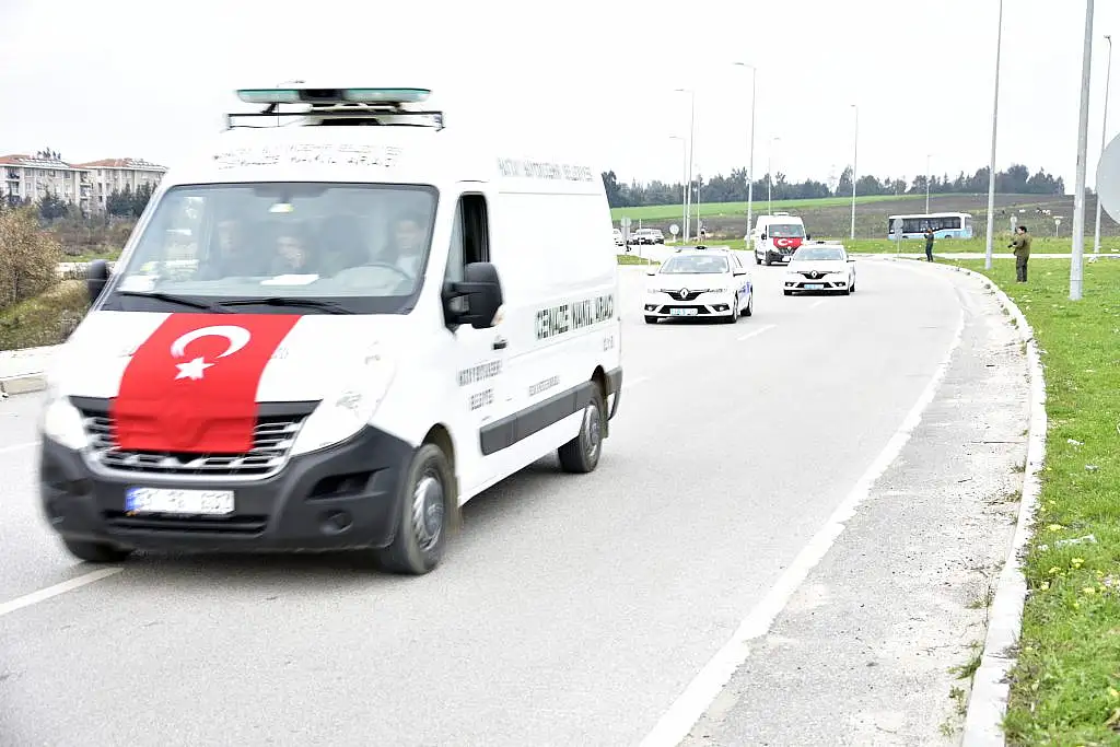 Polis eskortu eşliğinde hastaneden çıkan şehitlerin cenazeleri, memleketlerine uğurlandı.