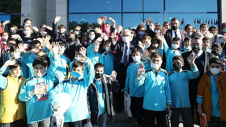 Kitap fuarını ziyaret eden minik öğrencilerin heyecanları ve mutlulukları gözlerinden okundu.