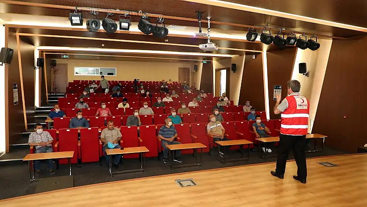 Programda daha sonra Kızılay Talas İlçe Başkanı Ünal Yüksel ve Kızılay gönüllüsü Dr. Tayfun Yılmaz tarafından kalp krizi, trafik kazası, bayılmalar, yaralanmalar vs. gibi günlük hayatta karşılaşılabilecek birçok konuda eğitici bilgiler verildi. Ayrıca deprem, sel, yangın vs. gibi bir doğal afet durumunda ilk yapılması gerekenler hakkında da bilgi paylaşımı yapıldı. Eğitimin sonunda katılımcılara içerisinde maske, kolonya ve dezenfektan bulunan hijyen paketi dağıtıldı.