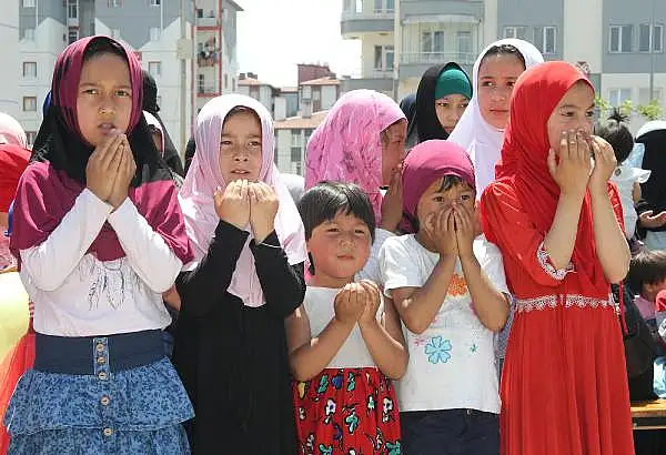 Konuşmanın ardından İl Müftüsü Şahin Güven dua etti. Dua sonrası okul öğrencileri ve öğretmenleri tarafından alınan bayramlıklar, Uygur Türkü çocuklara verildi.