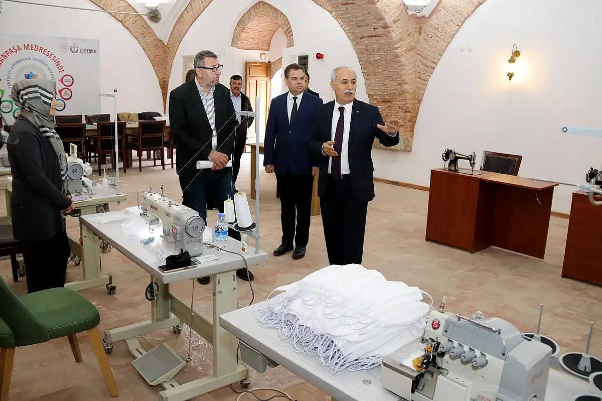Osmanlı Sadrazamı Koca Sinan Paşa tarafından 1573-1582 yılları arasında Bursa’nın Yenişehir ilçesinde yaptırılan tarihi Sinanpaşa Medresesinde, Yeni nesil girişimcilik merkezi projesi kapsamında maske üretiliyor.