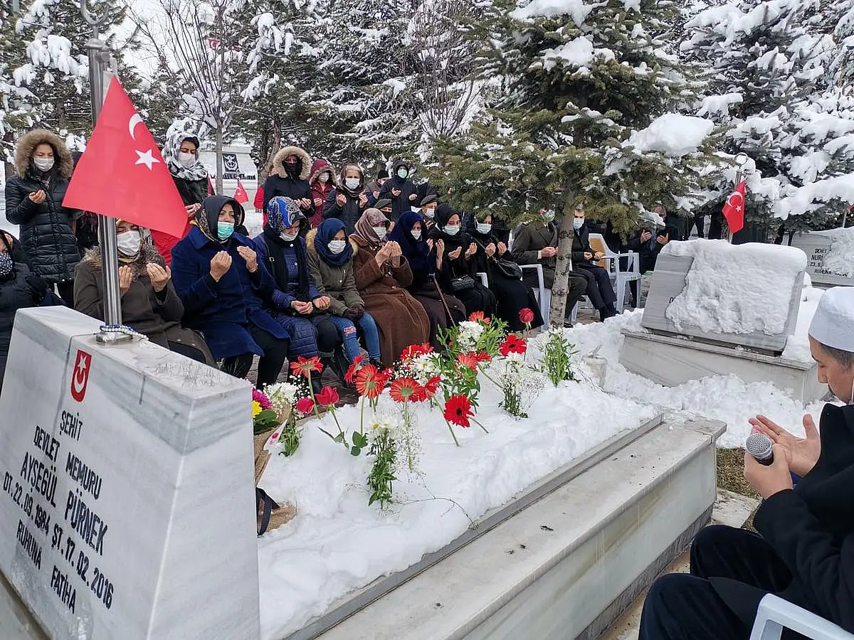 Ankara'da 2016 yılında Kara Kuvvetleri Komutanlığı'nın servis aracının canlı bomba tarafından patlatılması sonucu Kayseri'nin ilk kadın şehidi olan Ayşegül Pürnek, şehadetinin 5. yılında kabri başında mevlit okutuldu. Gazetecilere duygularını aktaran Anne Gülay Pürnek, "Bugün kızımın ölüm yıldönümü. Kızım gelin oldu, kar yağdı üzerine. Vatan sağ olsun. Evlat acısı çok zor, Allah kimseye vermesin. Rabbim emanetini aldı, sabrını veriyor. Onun özlemi beni çok yıkıyor ama sabrediyorum. O şimdi cennette" ifadelerini kullandı.