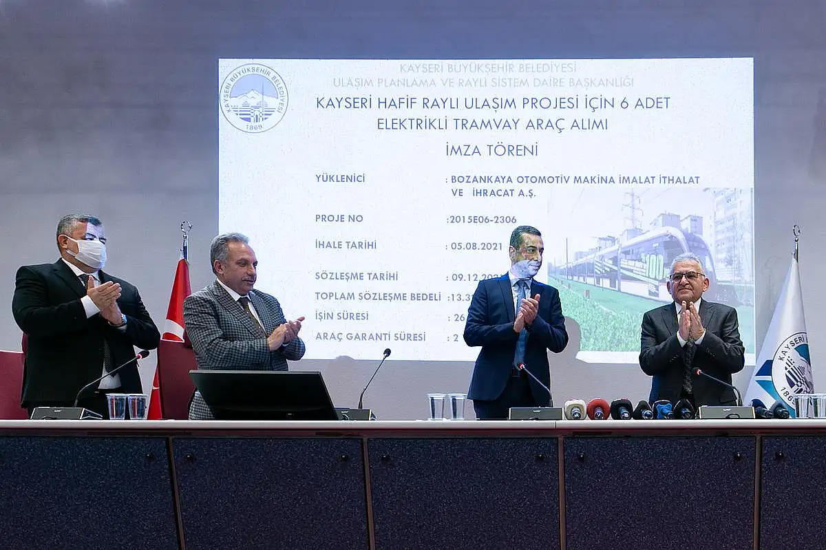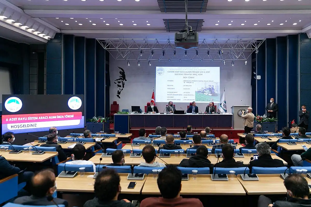 Kayseri Büyükşehir Belediye Başkanı Dr. Memduh Büyükkılıç, toplam bedeli 13 milyon 326 bin Euro olan 6 adet raylı sistem aracı alımına imza attı.