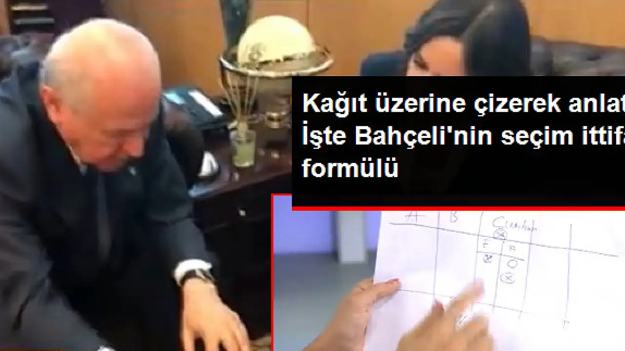 Bahçeli, AK Parti İle 'Seçim İttifakı' Formülünü Kağıt Üzerinde Tane Tane Anlattı MHP lideri Bahçeli, 2019'da AK Parti ile yapacakları söylenen ittifakın formülünü kağıt üzerine çizerek tek tek anlattı.Bahçeli, seçim ittifakı formülünün adını da 'Cumhur i