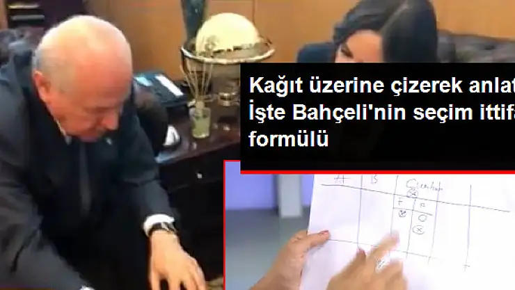 MHP lideri Bahçeli, 2019'da AK Parti ile yapacakları söylenen ittifakın formülünü kağıt üzerine çizerek tek tek anlattı. Bahçeli, seçim ittifakı formülünün adını da "Cumhur ittifakı" koydu.