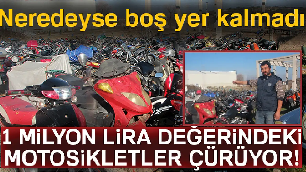 1 milyon lira değerindeki motosikletler çürüyor Bilecik'te bulunan 'Yediemin Otoparkı' motosiklet ve araç mezarlığına dönerken, otopark çalışanı Metin Dinçer, 'Otoparkımızda bini geçkin motosiklet, 500'ü geçkin araç bulunmakta.Fakat bunlar hiçbir şekilde