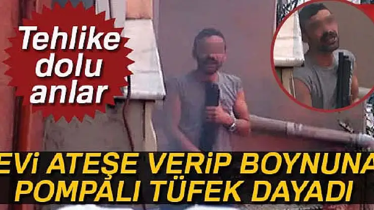 Kağıthane Çağlayan’da psikolojik sorunlar yaşayan Cüneyt D., yaşadığı evi ateşe vererek boynuna pompalı tüfek dayadı. Tehlike dolu o anlar kameralara yansıdı.