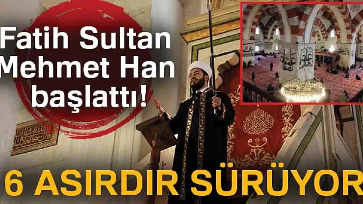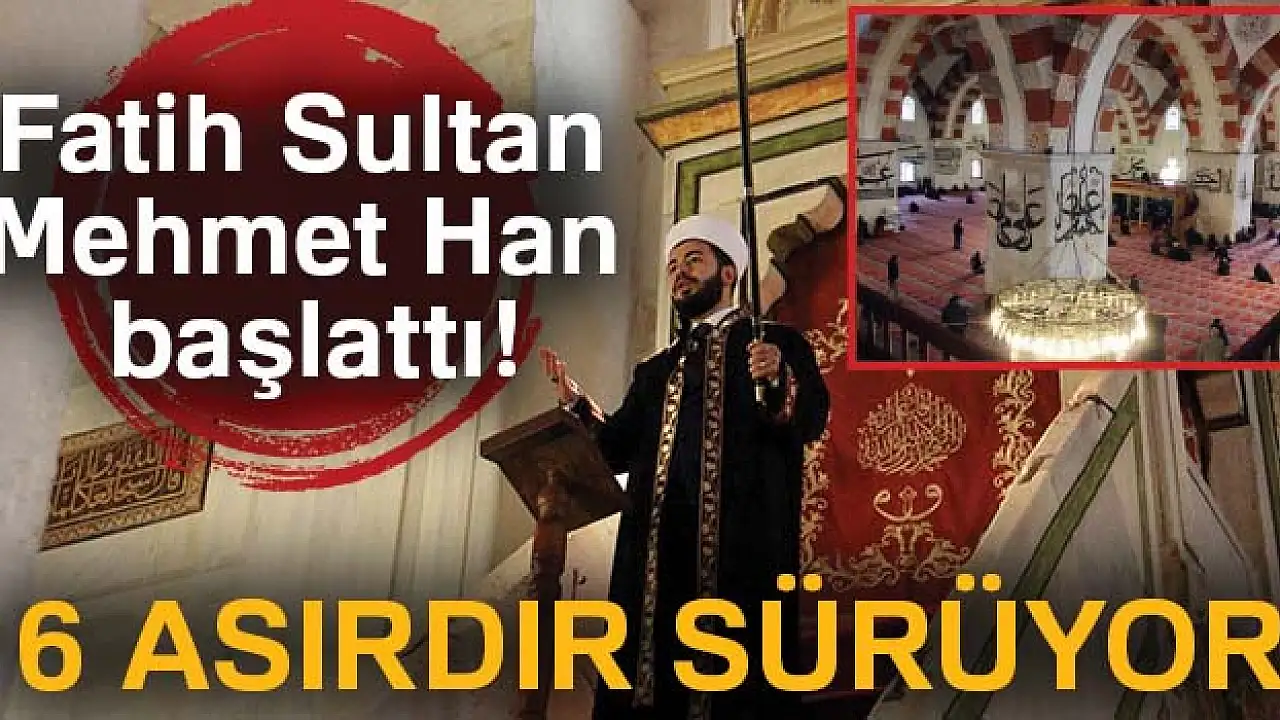 Edirne'de Osmanlı Dönemi'nin başyapıtı olarak gösterilen Selimiye Camii’nin karşısında bulunan ve kentin en eski camisi olma özelliğini taşıyan Edirne Eski (Ulu) Cami’de, İstanbul’un fethi öncesi Sultan Mehmet Han tarafından başlatılan kılıçla hutbe okuma geleneği 6 asırdır kesintisiz olarak yaşatılıyor.