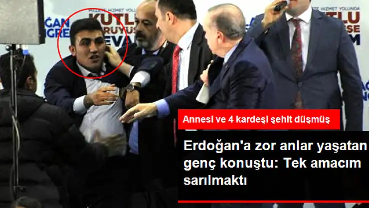 Şırnak'taki AK Parti kongresinde sahneye koşup Erdoğan'a sarılmak isteyen şehit yakını genç, "Tek amacım, sevdalısı olduğum Cumhurbaşkanımıza sarılmaktı. Ama yanlış anlaşıldı." dedi.