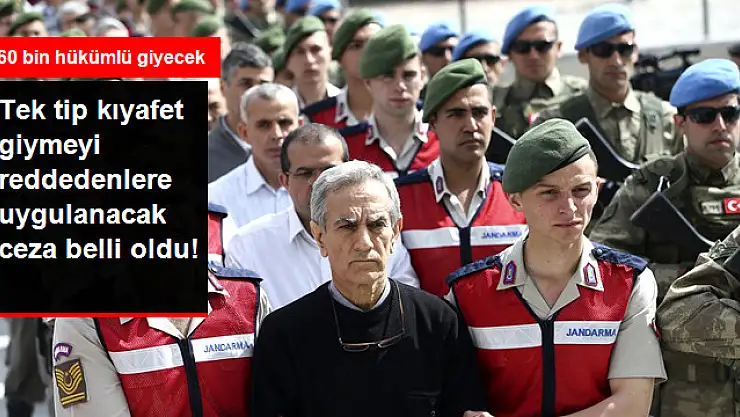 60 Bin Hükümlü Tek Tip Kıyafet Giyecek, Giymeyi Reddedenlere Hücre Hapsi Verilecek Yeni KHK ie birlikte 50 bini FETÖ'den tutuklu, 60 bin tutuklu ve hükümlü tek tip kıyafet giyecek.Giymeyi reddedene ve zarar verene, ziyaretçi yasağı ya da hücre hapsi cezas