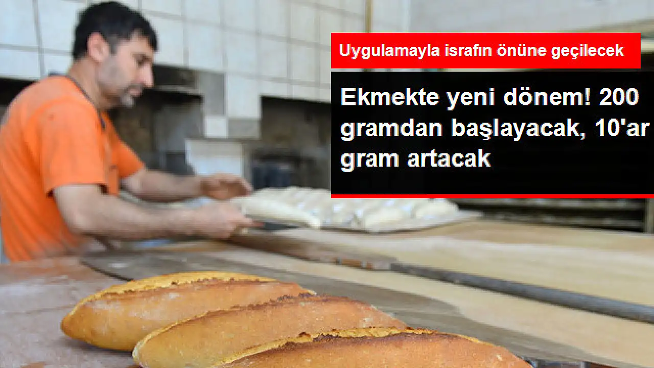 Ekmekte Yeni Dönem! 200 Gramdan Başlayacak, 10'ar Gram Artacak Ekmek çeşitleri, bugünden itibaren en az 200 gram ağırlıktan başlamak üzere 10'ar gram artırılarak piyasaya sunulacak.Bu şekilde, ekmek israfının önüne geçilecek.
