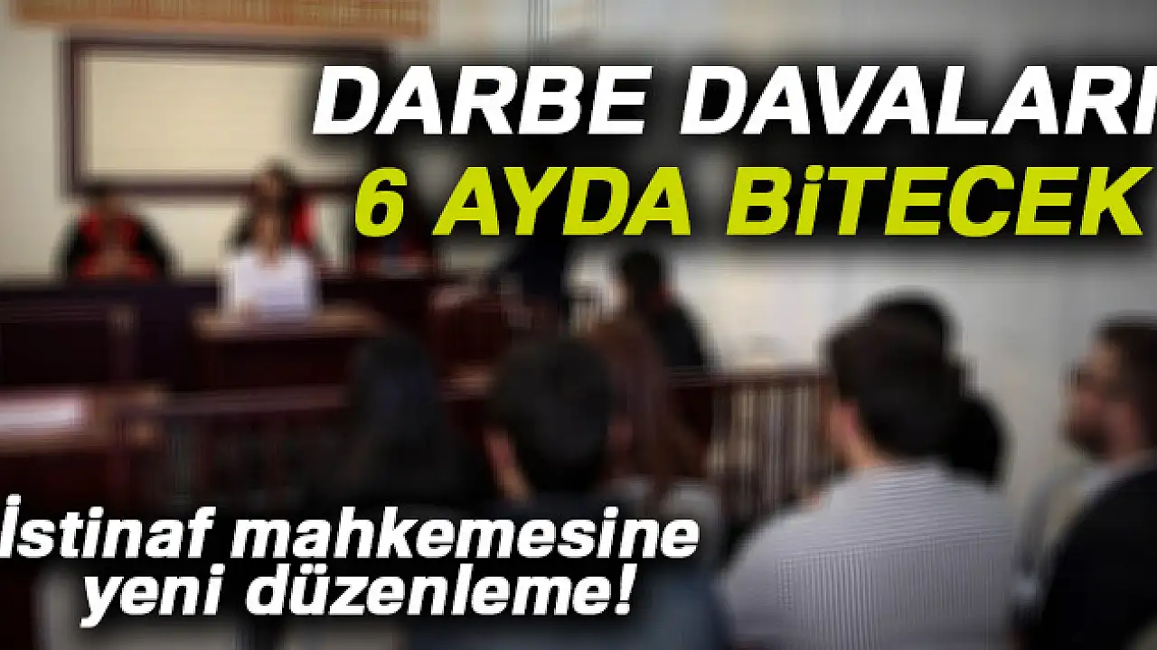 Darbe davaları 6 ayda bitecek Yaklaşık bin 500 darbe ve FETÖ davasının hızla sonuçlanması için hukuki altyapı tamamlandı.Mahkemelerin davaları 6 ay içerisinde bitirmesi planlanıyor.