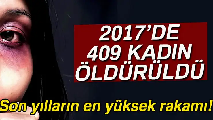 2017 yılında 409 kadın cinayete kurban gitti Türkiye'de kadına yönelik şiddet ve kadın cinayetleri tablosu giderek ağırlaşıyor.2016 yılında erkek şiddeti nedeniyle hayatını kaybeden kadın sayısı 328 iken, bu rakama geçtiğimiz yıl 409'a yükseldi.