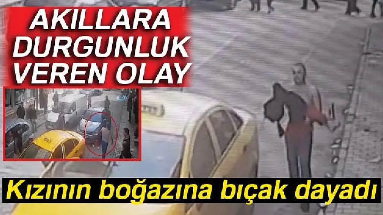 Cinnet geçiren baba küçük kızının boğazına bıçak dayadı Güngören'de bir ticari taksiyi gasp ettikten sonra kız çocuğunun boğazına sokak ortasında bıçak dayayan babaya vatandaşlar son anda engel oldu.Akıllara durgunluk veren olay saniye saniye kameralara y
