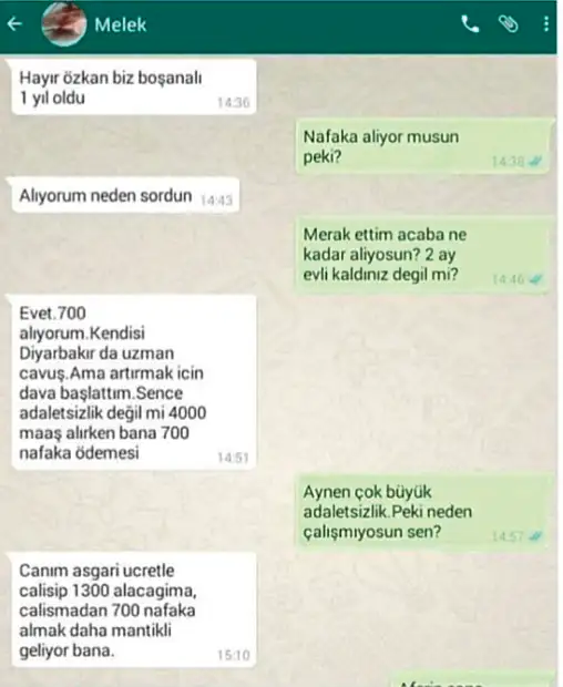 Yeni evlendiği eşinin mağduriyetini dile getiren Zeynep Hanım ise “Eşimin eski eşi üniversite mezunu, yabancı dili var ve sağlıklı. Ama yaptığı tek şey her ay nafakasını alıp gezip tozmak. Maaşlı birini çalıştırıyormuşuz gibi hissediyoruz. Eşime mesaj atmış. ‘Ben bireysel emeklilik istiyorum. Bu gençliğimin bir de yaşlılığı var’ yazmış" dedi.