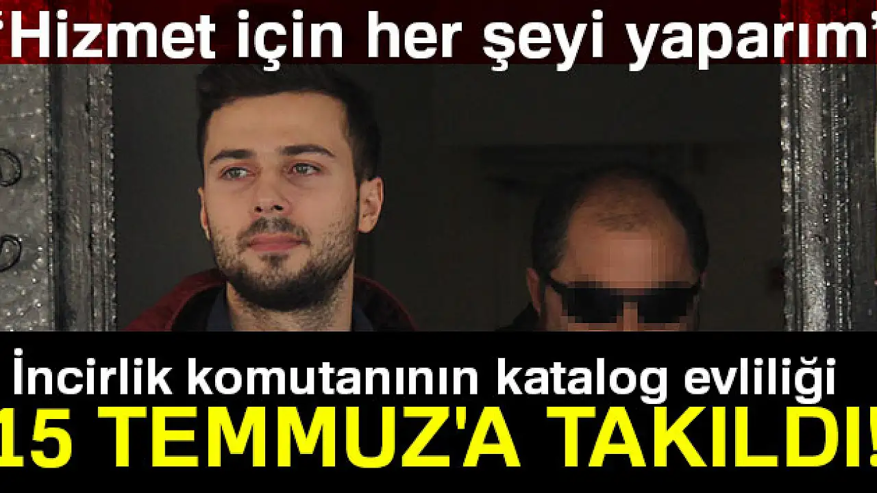 İncirlik komutanının katalog evliliği 15 Temmuz'a takıldı Adana'da İncirlik 10.Tanker Üst Komutanlığında görevli bir üsteğmenin, FETÖ yapılanması içinde katalog evlilik yapmak için hazırlık yaptığı ancak 15 Temmuz darbe girişimi nedeniyle evlenemediği sos