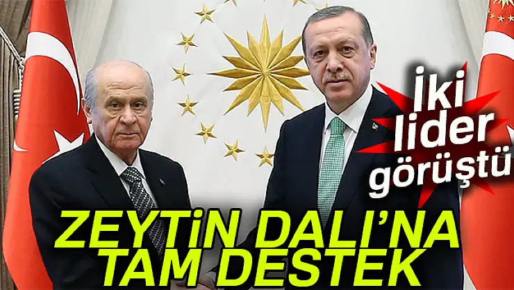 Cumhurbaşkanı Recep Tayyip Erdoğan ile Milliyetçi Hareket Partisi (MHP) Genel Başkanı Devlet Bahçeli telefonda görüştü. Cumhurbaşkanlığı kaynaklarından edinilen bilgiye göre, görüşmede Türk Silahlı Kuvvetlerince başlatılan Zeytin Dalı Harekatı konuşuldu.