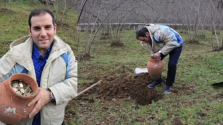 Trabzon’da özel bir okulda 10 yıldır para üstlerini 1'er TL şeklinde biriktiren Mehmet Ufuk Ayas topladığı 45 bin TL’yi küpe koyarak toprağa gömdü.