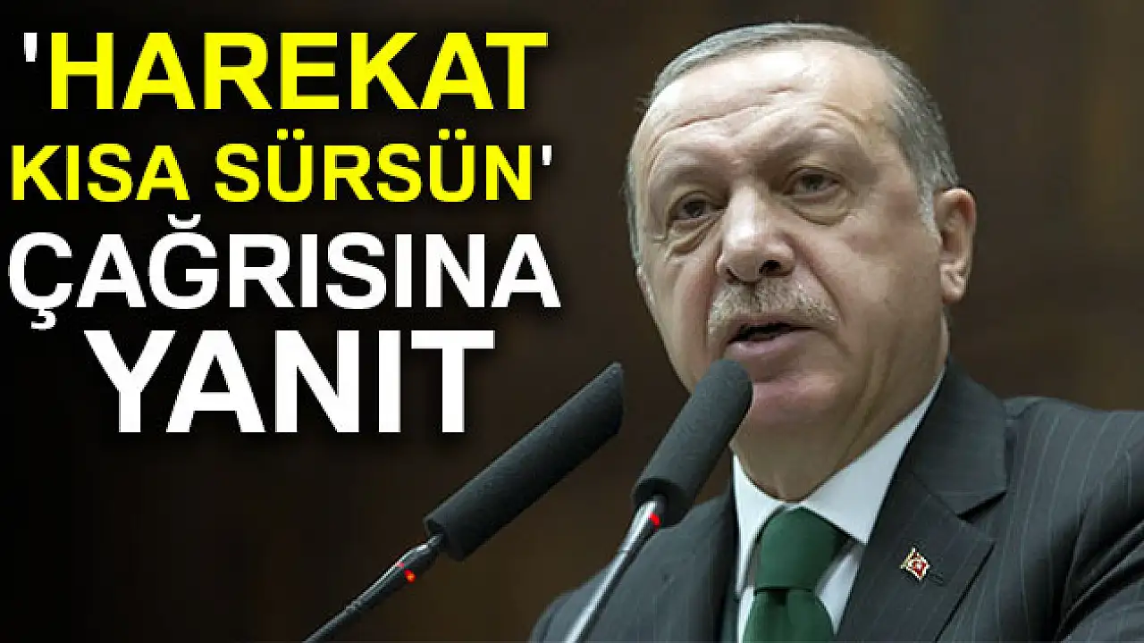 Birilerinin ısrarla operasyonun kısa sürmesi telkininde bulunduğunu belirten Erdoğan, ''Afganistan ne kadar sürdü? Yaklaşık 20 yıl. Bize bu aklı verenler biraz da kendileri kullansalar ne olur?'' ifadesini kullandı.