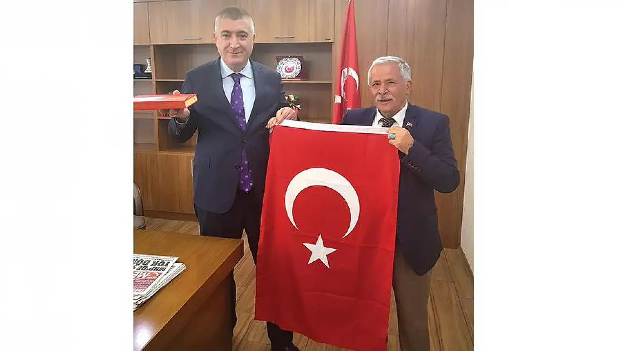 Gazetemiz İmtiyaz Sahibi ve 27. Dönem MHP Kayseri Milletvekili aday adayı Rifat Açıkgöz, MHP Kayseri İl Başkanı Serkan Tok’a hayırlı olsun ziyaretinde bulundu. Tok, ziyaretten duyduğu memnuniyeti dile getirerek, adaylığından dolayı Açıkgöz’ü tebrik ederek başarılar diledi.Açıkgöz, İl Başkanı Tok’a Kuran’ı Kerim ve Türk bayrağı hediye etti.