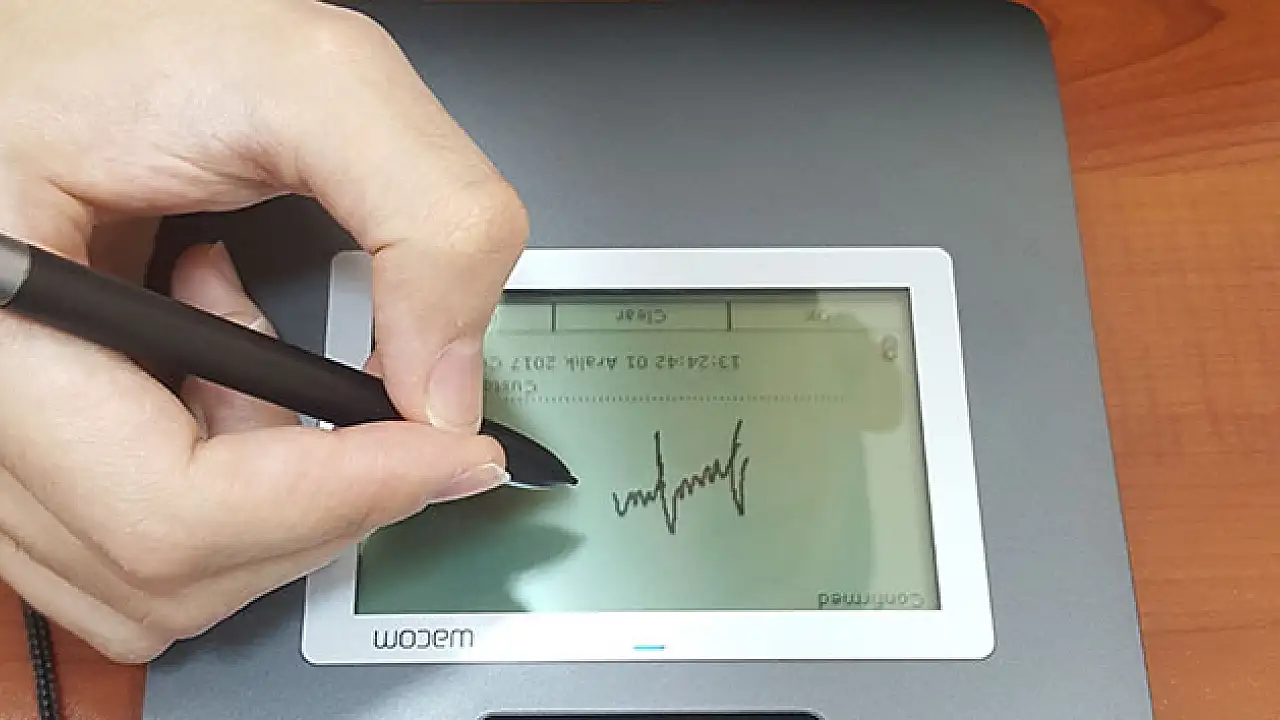 İmzaların dijitalleştirilmesi ile öğrenciler, kimliklerini doğrulamak için elle yazılmış imza davranış biyometrelerini kullanıyor. İmzalama işlemi sırasında şekil, hız, darbe, kalem basıncı ve zamanlama bilgisi analiz edilerek ekrana yansıtılıyor. İmza tabletleri ile ıslak imza, yasal olarak ıslak mürekkebe eşdeğer dijital imzaya dönüştürülüyor.