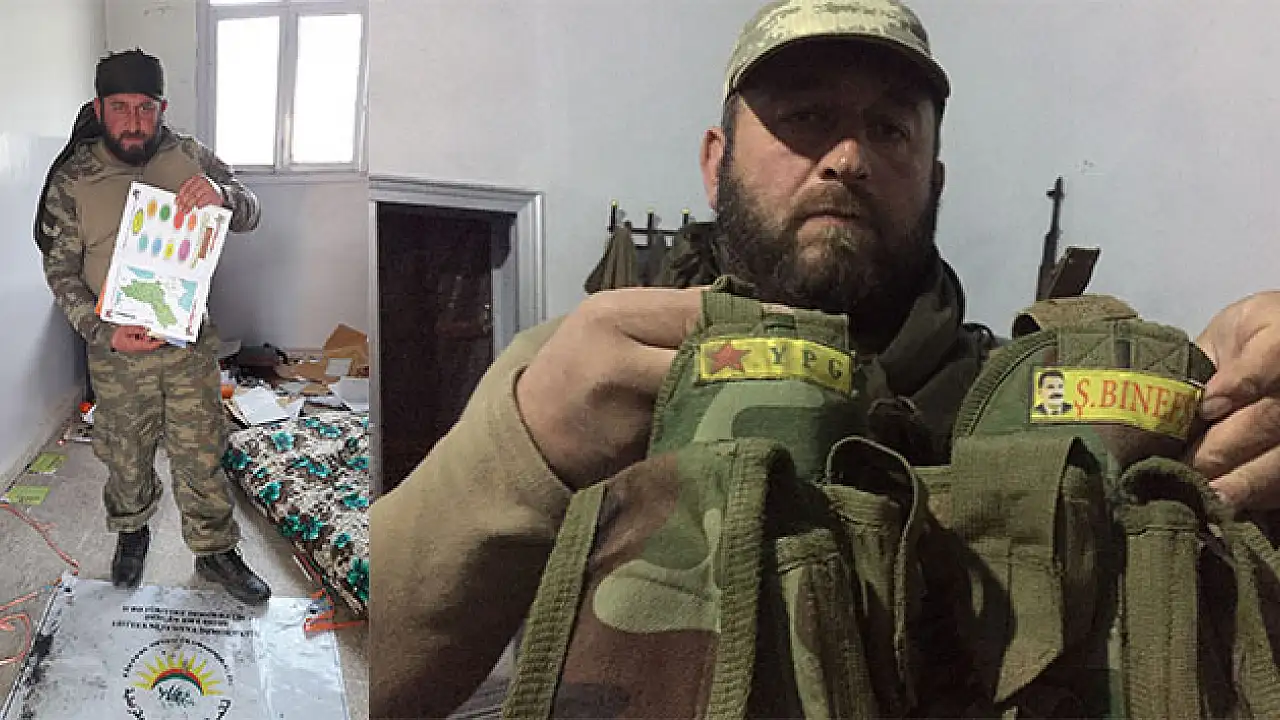 Afrin’de Türkmenlerden oluşan Fatih Sultan Mehmet Taburu’nda YPG’ye karşı gönüllü olarak savaşan Rizeli Murat Kutanis tarafından çekilip paylaşılan fotoğraflar terör örgütleri YPG ve PKK arasındaki bağı bir kez daha ortaya koydu. Fatih Sultan Mehmet Taburuna bağlı gönüllü askerler tarafından düzenlenen operasyonda öldürülen YPG'li teröristin hücum yeleğinin üzerinde bölücü terör örgütü PKK elebaşı Abdullah Öcalan’ın arması çıktı.