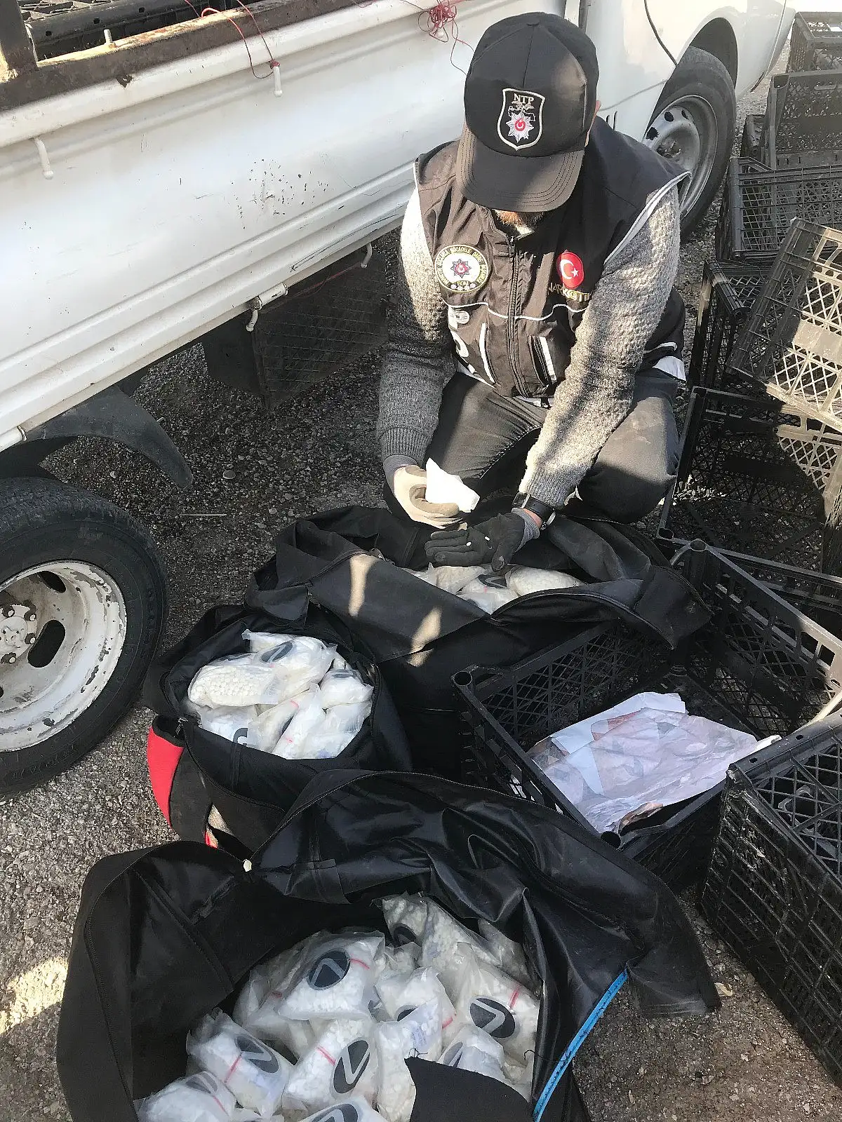 Ekipler, plakasını tespit ettikleri kamyoneti adım adım takibe aldı. İçerisinde Suriye uyruklu V.Ş.Z (37) ve M.A'nın (29) bulunduğu plastik kasa yüklü kamyonet, Sarıçam ilçesi D-400 yolunda durduruldu. İki şüpheli, araçtan indirilerek üst araması yapıldı. Polis, daha sonra hassas burunlu köpek ile yapılan aramada kasaların arasına gizlenmiş 250 bin adet uyuşturucu hap ele geçirdi.