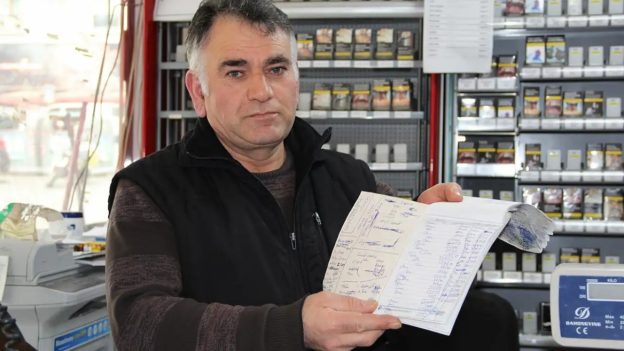 ALDIĞI EMEKLİ İKRAMİYESİYLE, 'BİZ BİZE YETERİZ TÜRKİYEM' DEDİ, VERESİYE DEFTERİNİ ÖDEDİ