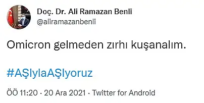 ALİ RAMAZAN BENLİ: 'OMİCRON GELMEDEN ZIRHI KUŞANALIM'