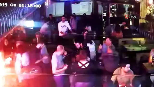 'Siparişlerim geç kaldı' diyerek barda kavga çıkaran alkollü müşterinin iki garsonu bıçakladığı kavga anları ise güvenlik kamerasına yansıdı. Görüntülerde, müşterilerin eğlendiği sırada kavganın çıktığı ve olayın mekanın dışına doğru taştığı görülüyor. Ayrıca bazı müşterilerin kavgayı umursamadığı, bazılarının ise cep telefonuna kaydettiği görülüyor.