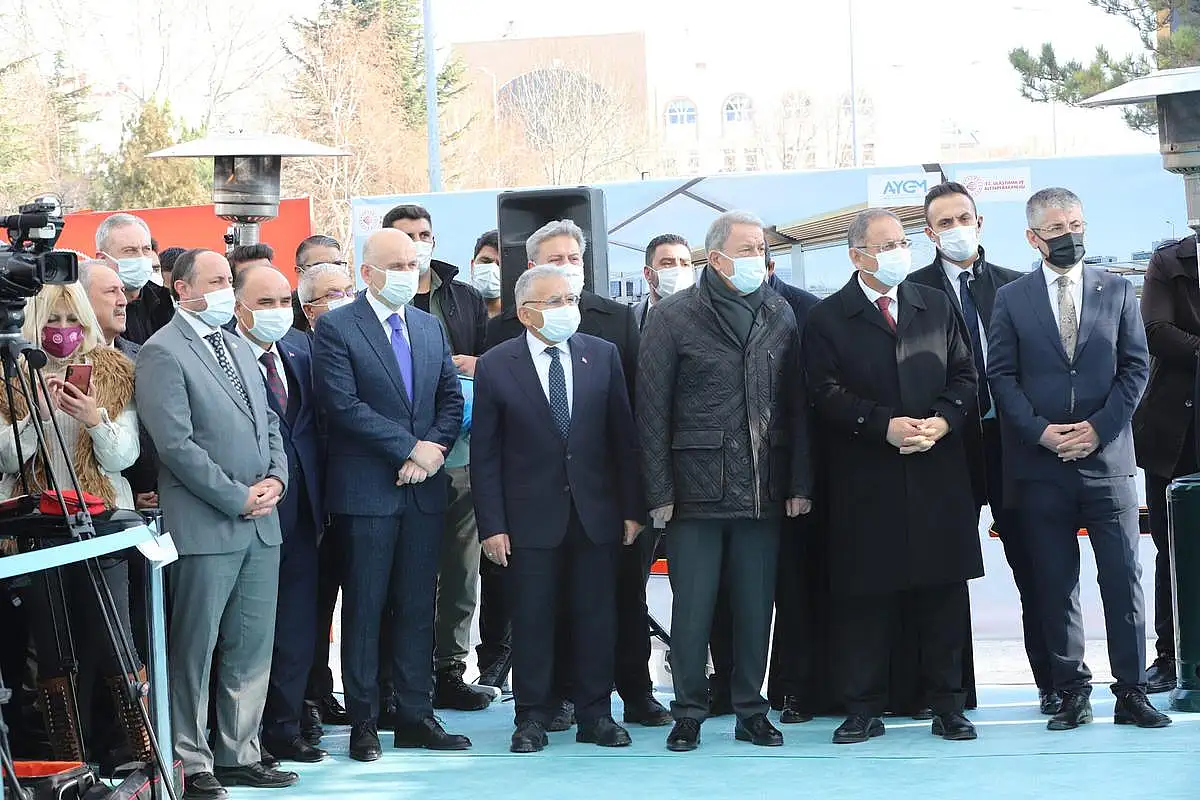 Kayseri Anafartalar-Şehir Hastanesi-Mobilyakent Tramvay Hattı İlk Ray Kaynağı Töreni, Ulaştırma ve Altyapı Bakanı Adil Karaismailoğlu, Milli Savunma Bakanı Hulusi Akar, AK Parti Genel Başkan Yardımcısı Mehmet Özhaseki ve Kayseri Büyükşehir Belediye Başkan