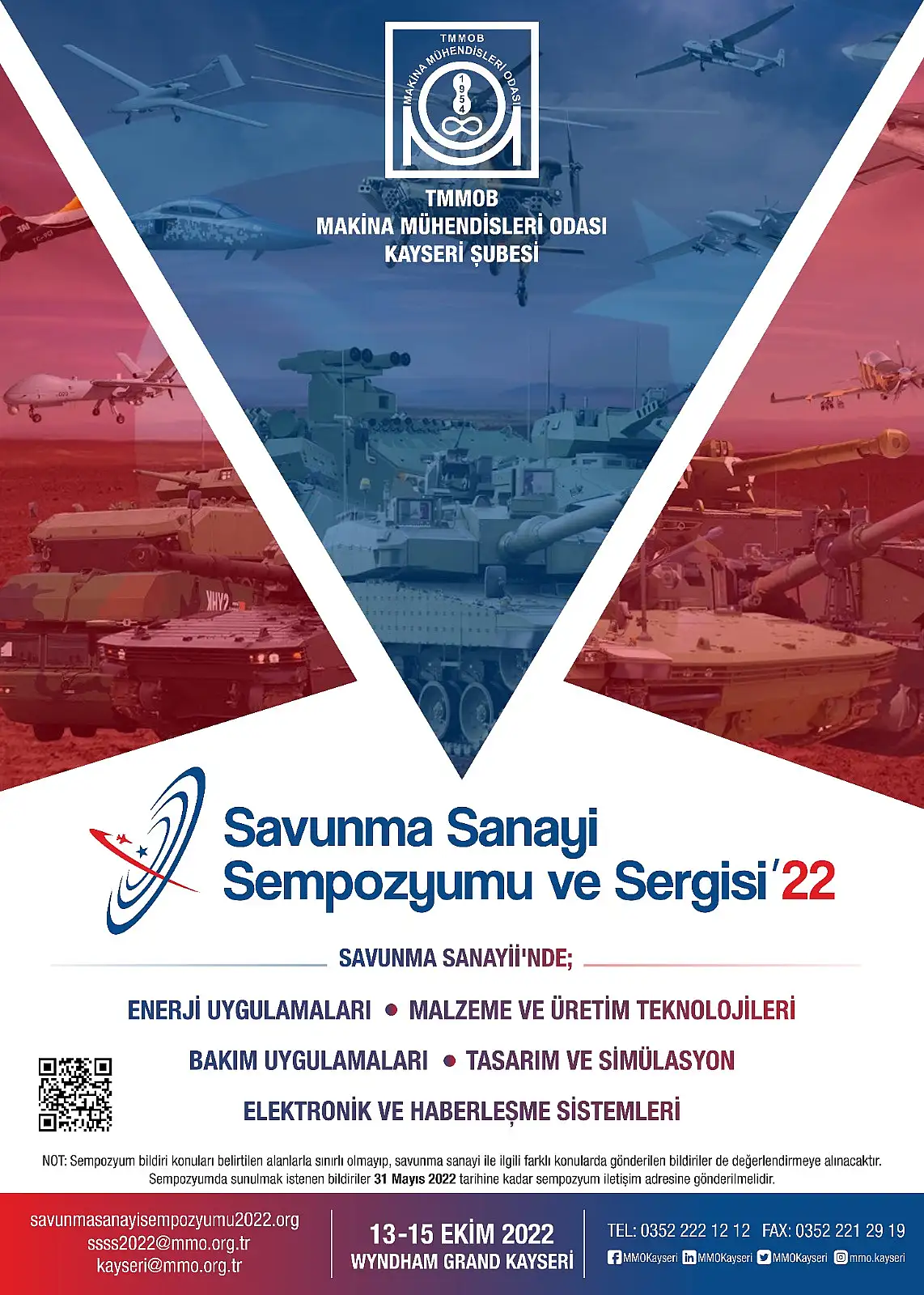 Makina Mühendisleri Odası Kayseri Şubesi yürütücülüğünde Savunma Sanayisine katkı sağlamak amacı ile 13-16 Ekim 2022 tarihlerinde, Wyndham Grand Kayseri’de Savunma Sanayi Sempozyumu ve Serginin amacı ise şöyle;