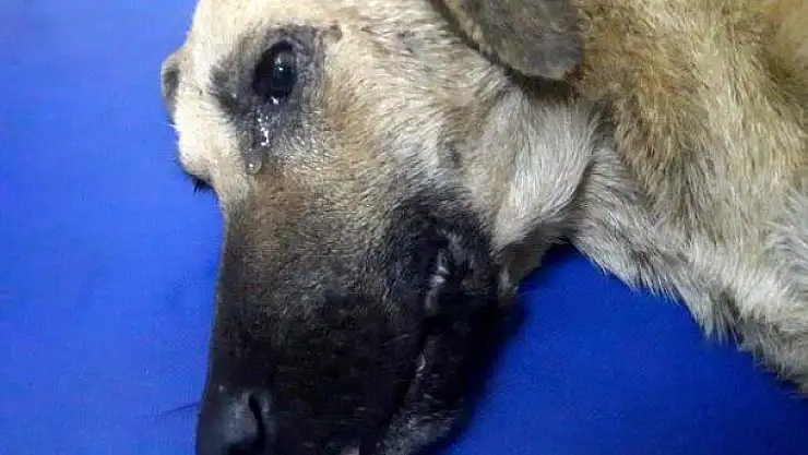 Arabanın çarpması sonucu tedaviye alınan köpeğin ağlaması yürek burktu