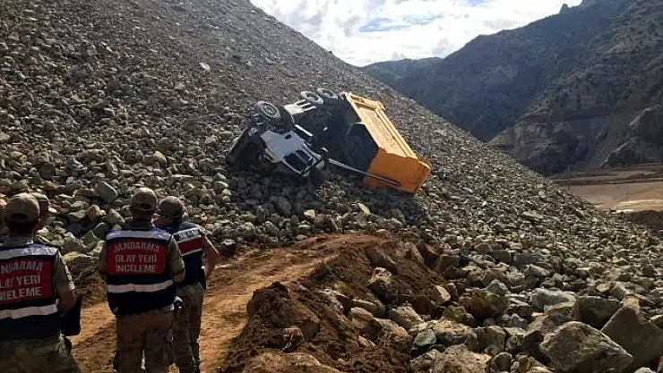 Yusufeli ilçesine bağlı Çevreli köyündeki yeni yerleşim alanı inşaat sahasında hafriyat taşıyan Ahmet Boy'un kullandığı plakası henüz belirlenemeyen kamyon, boşaltma işlemi yaptığı sırada uçuruma yuvarlandı.