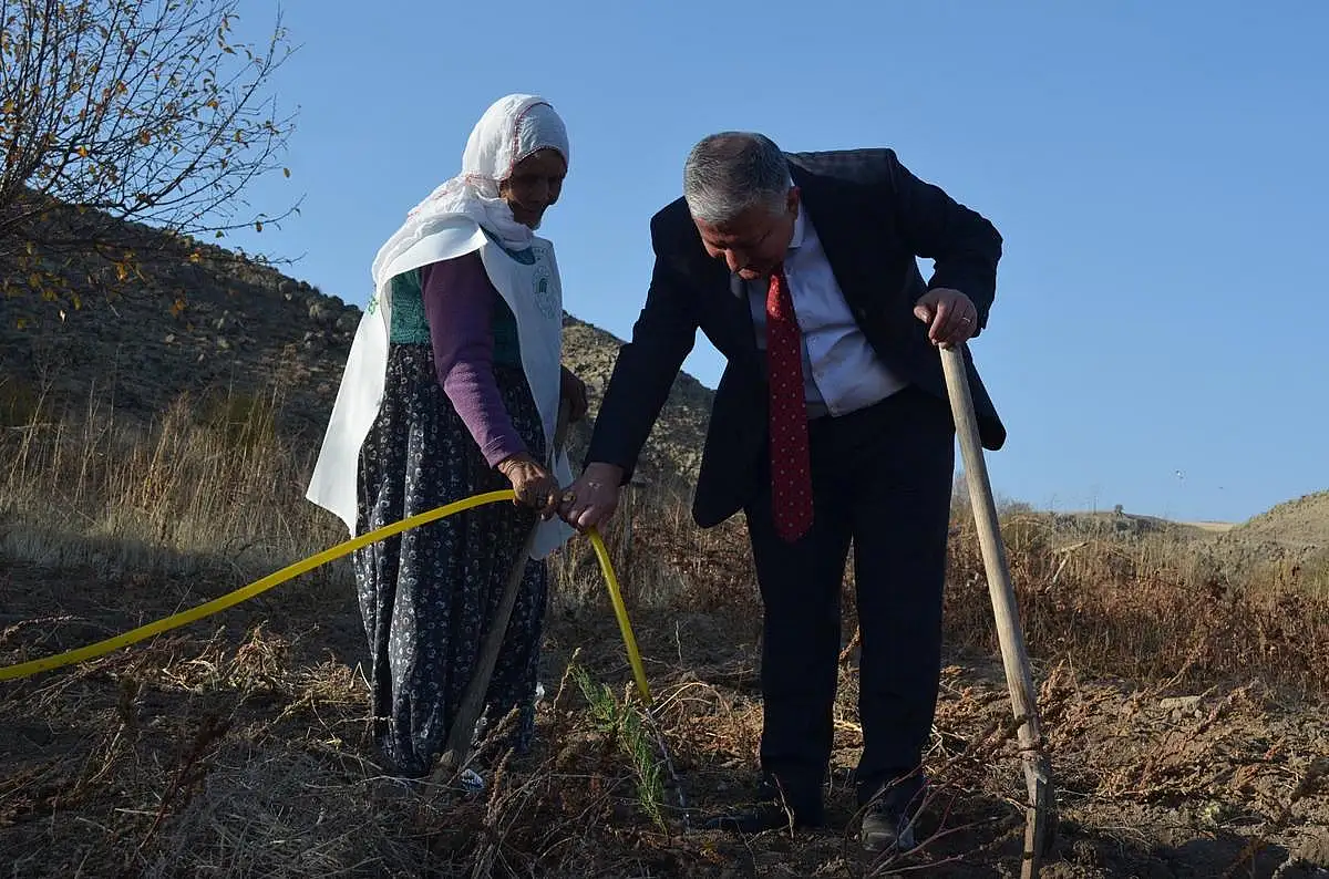 Gülizar Polat ile birlikte fidan diken Develi Kaymakamı Murat Duru, "Sayın Cumhurbaşkanımızın himayelerinde Tarım ve Orman Bakanlığımızın organizasyonunda 81 İlde 959 İlçemizde 11 Milyon fidan toprakla buluştu. Bu kapsamda bizde Develi ilçesi olarak 20 bin fidanı toprakla buluşturduk. Kabaklı köyünde yaşayan Gülizar teyzemizin de bir dileği oldu oğlu Selehattin vasıtasıyla. 2 tane fidan dikerek bende bu kampanyaya katılmak istiyorum dedi. Bizde onu kırmadık Kabaklı köyümüze geldik şimdi Gülizar teyzemizle 2 tane fidan diktik. Bir tanesi kendisi adına bir tanesi de 18 yıl önce rahmetli olan eşi adına diktik. Peygamber efendimizin 'yarın kıyametin kopacağını bilseniz dahi 1 fidan dikin' hadisi gereğince Gülizar teyzemiz bu 2 fidanı dikerek peygamber efendimizin hadisini bize en iyi şekilde göstermiş oldu. Kendisinden Allah razı olsun kendisine sağlıklı mutlu huzurlu uzun ömür diliyoruz" diye konuştu.
