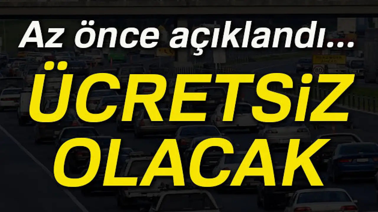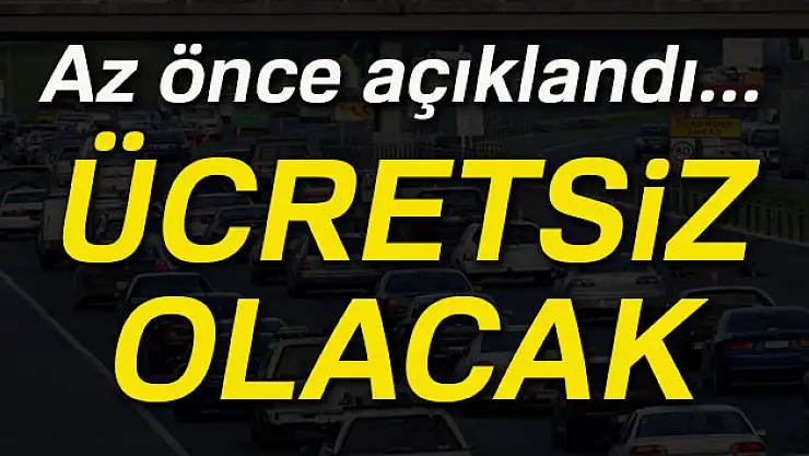 27 Ağustos Pazartesi saat 07.00`ye kadar "yap-işlet-devret" projeleri hariç, Karayolları Genel Müdürlüğünce işletilen köprü ve otoyollar ile 15 Temmuz Şehitler Köprüsü ve Fatih Sultan Mehmet Köprüsü`nden geçişlerde ücret alınmayacak.