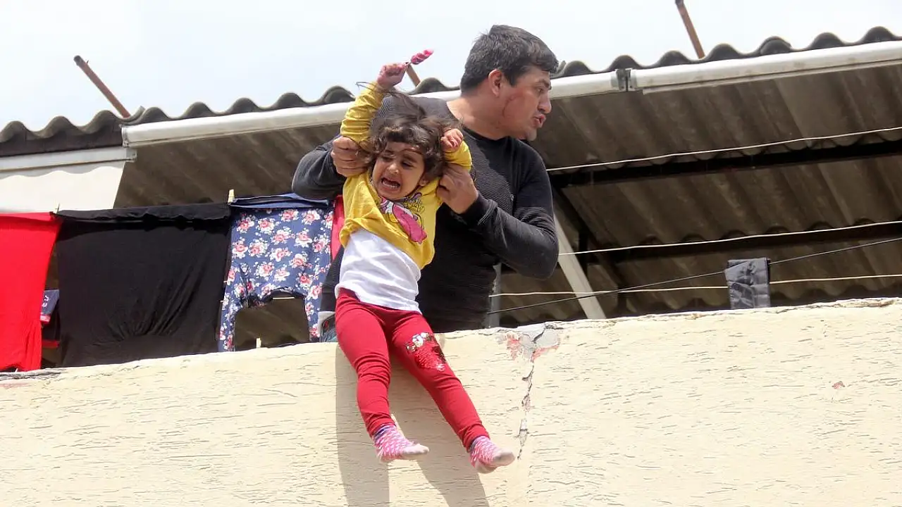 Adana’da eşiyle tartışan şahıs 4 yaşındaki kızını rehin alarak damdan atmaya çalıştığı sırada çocuğun “Babacığım beni atma, eve gidelim yapma” feryadı herkesi ağlattı.