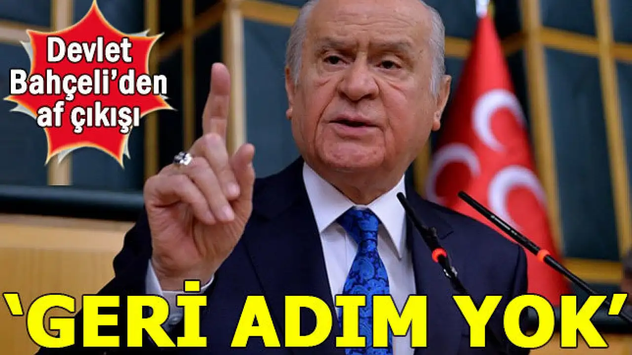 Son olarak Başbakan Yıldırımın'ın "Gündemimizde yok" açıklamasına rağmen af çağrısını yineleyen MHP Lideri Bahçeli, "Geri adımımız düşünülemez. Bayram öncesi adım atılmalı" dedi.