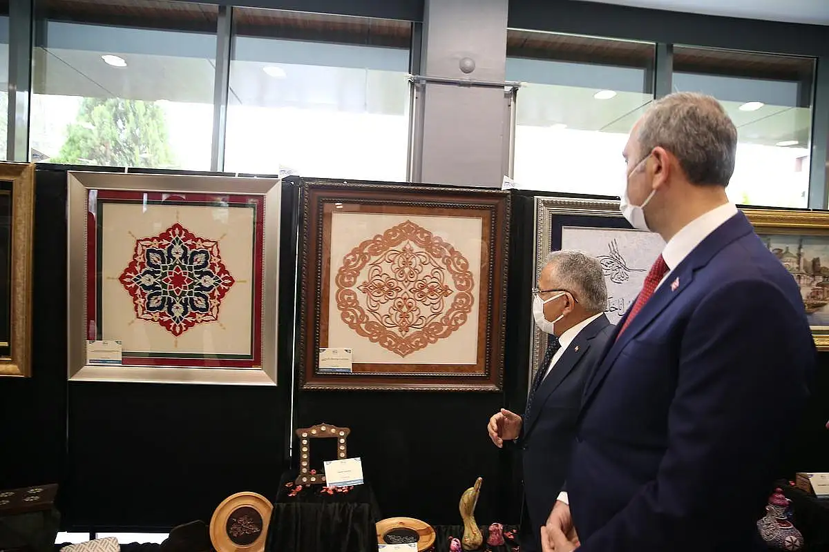Başkan Büyükkılıç, Bakan Gül’e 150. Yılda 150 proje kapsamında seçim vaatlerinden birisi olan E-38 sanal pazarda yer alan 25 el sanatı branşı ile hazırlanmış 185 adet eserin bulunduğu sergi hakkında bilgiler verdi. Bakan Gül, eserleri ilgiyle inceleyerek, “Muhteşem. El emeği, göz nuru” yorumunu yaptı.