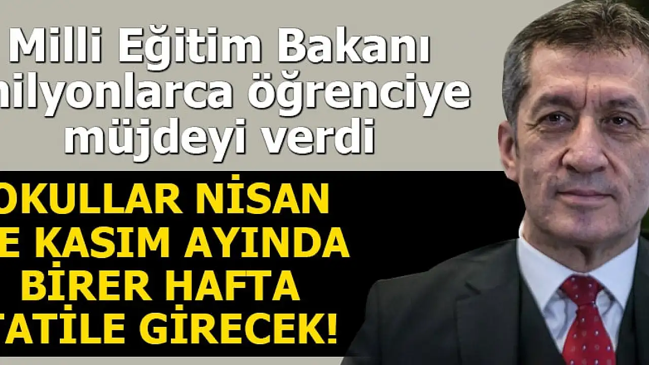 Milli Eğitim Bakanı Ziya Selçuk, öğrencilerin Nisan ve Kasım'da 1'er hafta ara tatil yapacağını duyurdu..