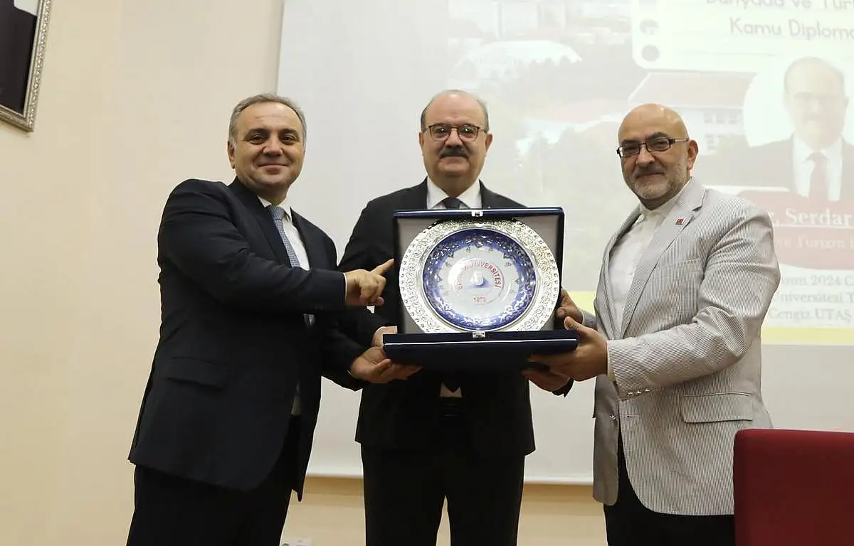 Konuşmaların ardından Rektör Fatih Altun tarafından Kültür ve Turizm Bakan Yardımcısı Serdar Çam’a plaket takdim edilirken etkinlik, hatıra fotoğrafı çekiminin ardından sona erdi.