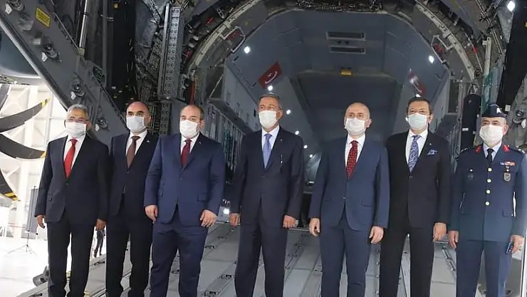 Milli Savunma Bakanı Hulusi Akar, Sanayi ve Teknoloji Bakanı Mustafa Varank ile Ulaştırma ve Altyapı Bakanı Adil Karaismailoğlu, "uçan kale" olarak nitelendirilen A400 M uçağının bakım ve retrofit faaliyetlerini inceledi, uçağın kokpitinde çalışmalara ilişkin bilgi aldı.