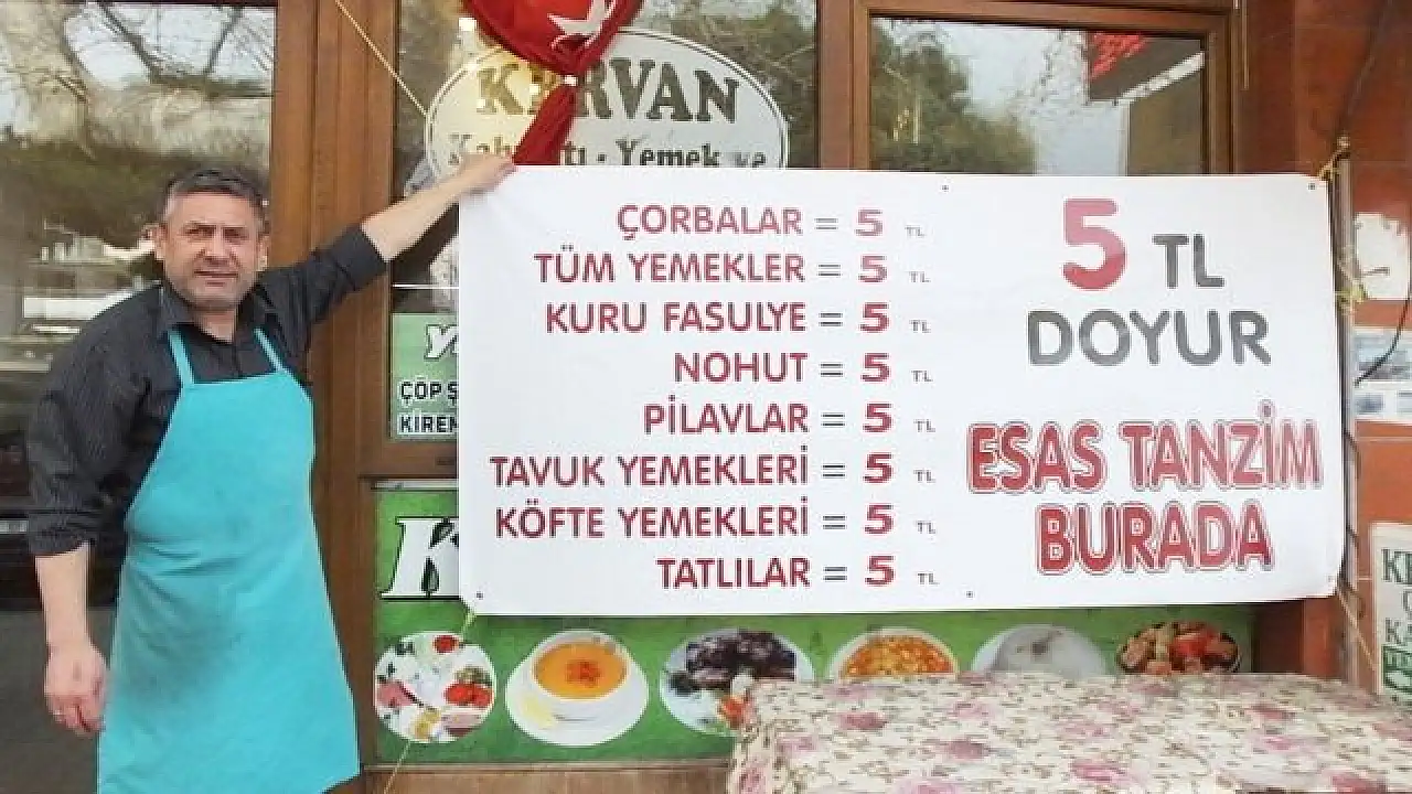 Balıkesir'in Burhaniye ilçesinde, devletin yaptığı tanzim satışlardan etkilenen lokantacı Bülent Gür, çorbasından köftesine kadar bütün yemek çeşitlerini 5 liraya indirdi. Kampanyanın ilgi gördüğünü belirten Gür, hem kendisinin hem de müşterilerin karnının doyduğunu söyledi.