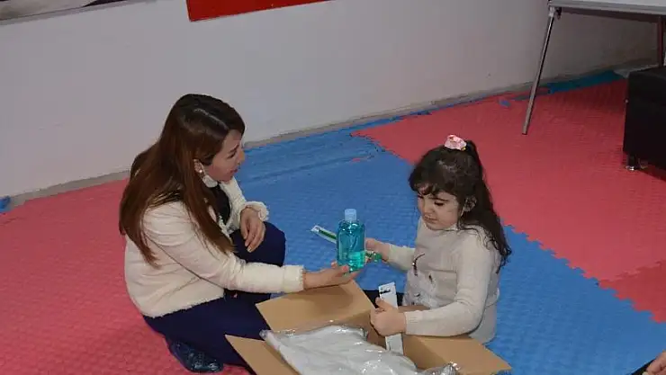 Zakira Hekmat içersinde çocuk hijyen malzemelerinin olduğu 150 koliyi engelli çocukların ailelerine verilmek üzere Mutlu Yüzler Rehabilitasyon Merkezi yetkililerine verdi.