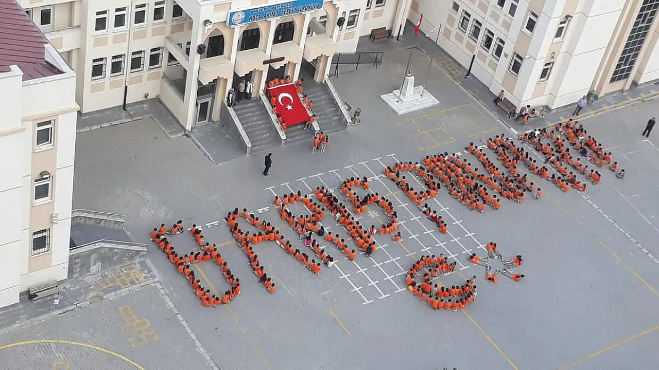 Şanlı Ordumuz'un sınır ötesinde başarıyla yürüttüğü Barış Pınar Harekatı'na Amerika ile yapılan müzakereler sonucunda ara verildi. Sahada ordumuzun kazandığı zaferi, diplomatik hamlelerle masada taçlandırdık. Halkımızın desteği ve ordumuzun yanındaki duruşu sürüyor. Son olarak Kayseri, İldem'de bulunan Hoca Ahmet Yesevi İlkokulu öğrencileri, bedenleriyle okul bahçesine 'Barış Pınarı' yazdı ve Türk Bayrağı açtılar. Sınır ötesinde vatan savunması için çarpışan Türk Askerine selam gönderen öğrenciler, vatanın bölünmez bir bütünlük içerisinde olduğunu ve gelecekte kendilerininde asker olacağını ifade ettiler.