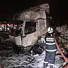 Bariyerlere çarpan tır alev alev yanarak küle döndü Bariyerlere çarpan tır alev alev yanarak küle döndü