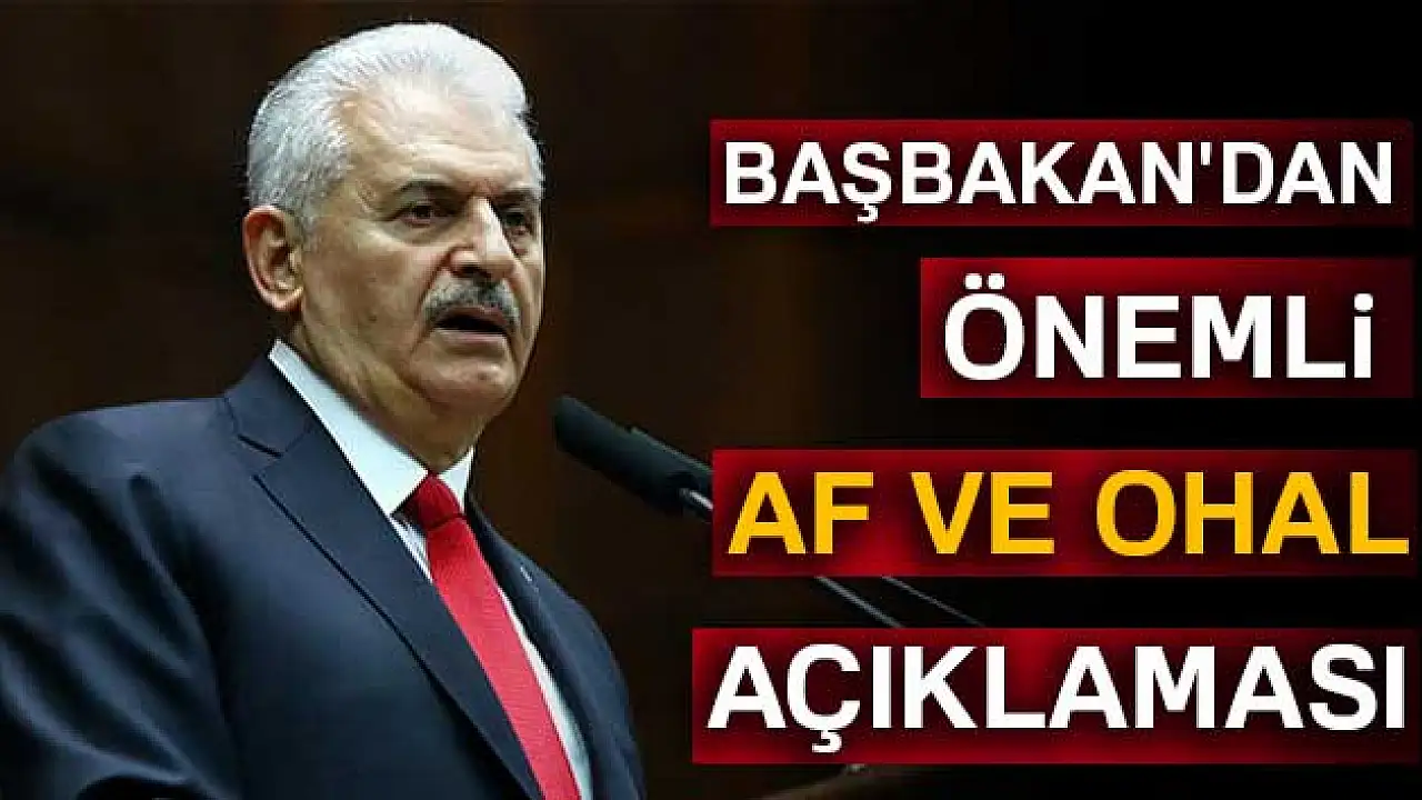 Başbakan Binali Yıldırım, OHAL'in kaldırılmasıyla ilgili olarak, ''Sayın Cumhurbaşkanımızın açıklaması çok iyi olmuştur. Ümit ederim yakın zamanda olağanüstü hal meselesi yeni hükümetin gündeminde olacaktır ve kaldırılması cihetine gidilecektir'' dedi. Yıldırım, ayrıca gündemlerinde af olmadığını söyledi.