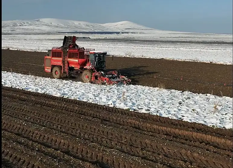 Kayseri’de kar ve soğuk hava etkisini gösterirken çiftçiler karla örtülü tarlalarında hasat sürecini devam ettiriyor. Kayseri Pancar Ekicileri Kooperatifi Yönetim Kurulu Başkanı Hüseyin Akay da Sarıoğlan ve Çepni bölgelerinde devam eden pancar hasadında çiftçilerle bir araya geldi. Zorlu hava koşullarında pancar hasadını sürdüren çiftçiler ile tek tek ilgilenen Başkan Akay, “Karla örtülü tarlalarda süren hasat, çiftçilerimizin samimi gülüşleri ve alın teriyle anlam kazanıyor. Şeker sektörünün gücünü, çiftçimizin emeği ve fedakarlığı oluşturuyor. Hepsinden Allah razı olsun” dedi.